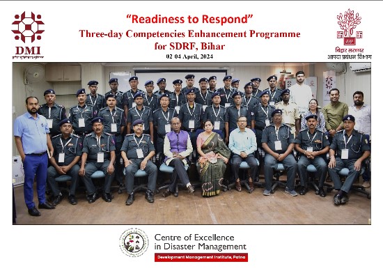 | DMI, Patna | The 26th batch of the 3-day Competency Enhancement Programme on "Readiness to Respond" for the SDRF of the Disaster Management Department, GoB. The program was organised and conducted by the Center of Excellence in Disaster Management (CoEDM) at the DMI on 02-04 April 2024 | Click to View | |