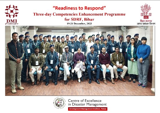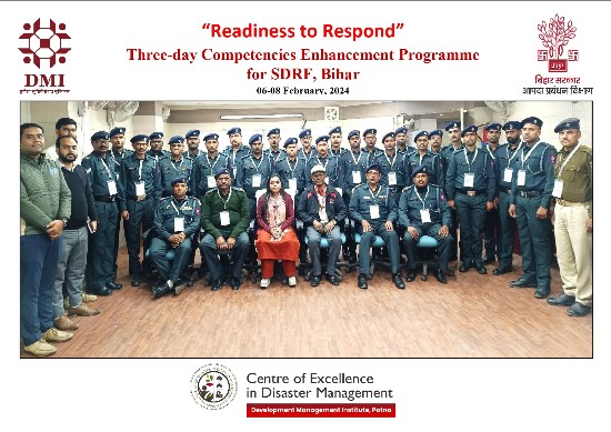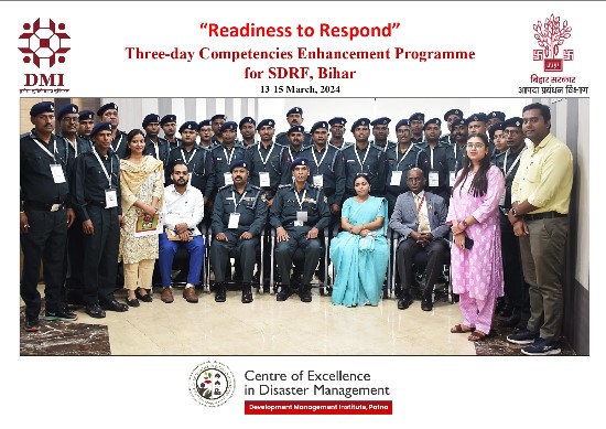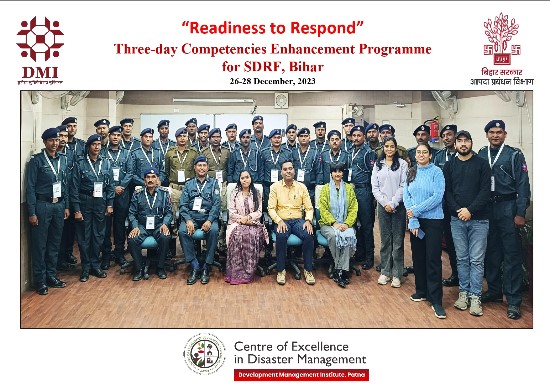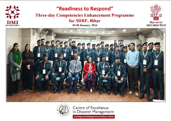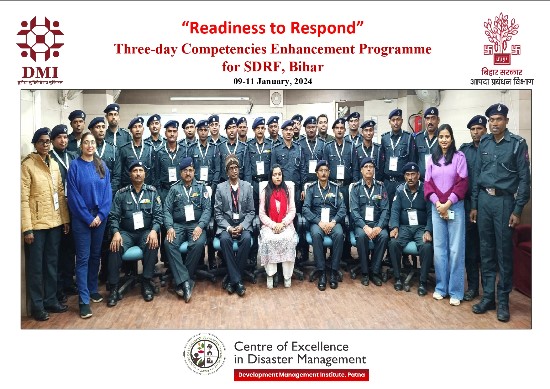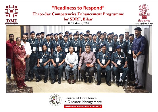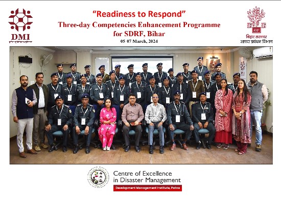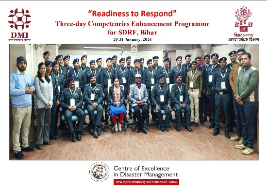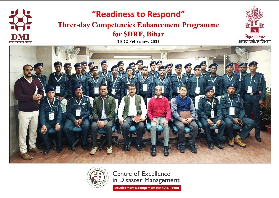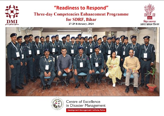 | DMI, Patna | The 22nd batch of the 3-day Competency Enhancement Programme on "Readiness to Respond" for the SDRF of the Disaster Management Department, GoB. The program was organised and conducted by the Center of Excellence in Disaster Management (CoEDM) at the DMI on 27-29 February 2024 | Click to View | |