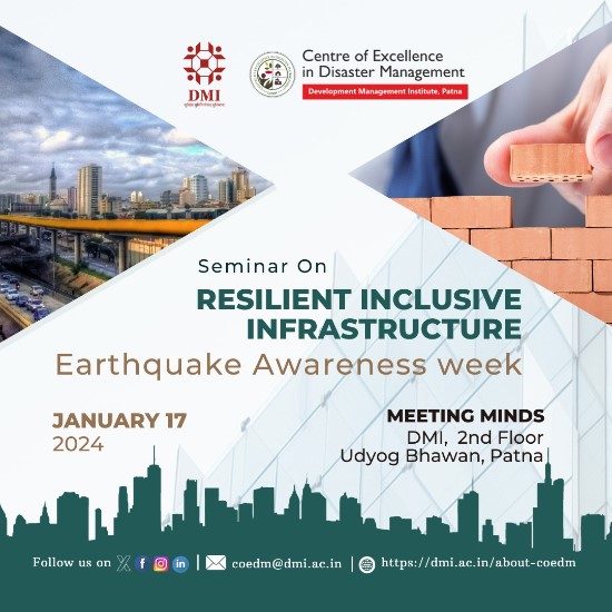 | DMI, Patna | A seminar to commemorate the earthquake awareness week was organized by CoEDM, DMI Patna. The participants include engineers and architects, academicians and other stakeholders to discuss the risk minimization practices for the earthquakes | Click to View | |