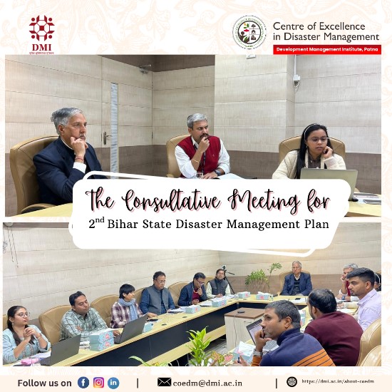 | DMI, Patna | A consultative meeting was held on December 12, 2023 to discuss the contents and chalk out the broad topics for the Bihar State Disaster Management Plan. | Click to View | |