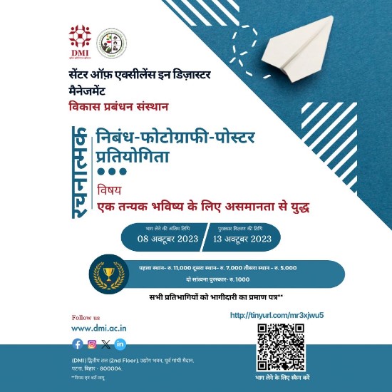 | Gyan Bhawan, Patna | A Creative Contest cum Seminar on the theme “Fighting Inequality for Resilient Future” at Gyaan Bhawan, Gandhi Maidan, Patna was organized by CoEDM, DMI Patna3 | Click to View | |