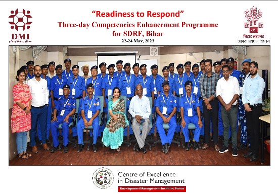 | DMI, Patna | The 13th batch of the 3-day Competency Enhancement Programme on "Readiness to Respond" for the SDRF of the Disaster Management Department, GoB. The program was organised and conducted by the Center of Excellence in Disaster Management (CoEDM) at the DMI on 22-24 May 2023 | Click to View | |