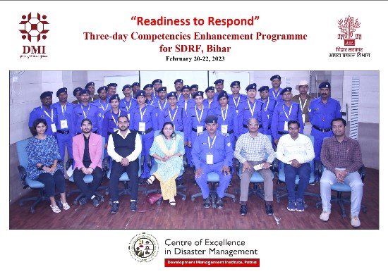 | DMI, Patna | The 5th batch of the 3-day Competency Enhancement Programme on "Readiness to Respond" for the SDRF of the Disaster Management Department, GoB. The program was organised and conducted by the Center of Excellence in Disaster Management (CoEDM) at the DMI on 20-22 February | Click to View | |